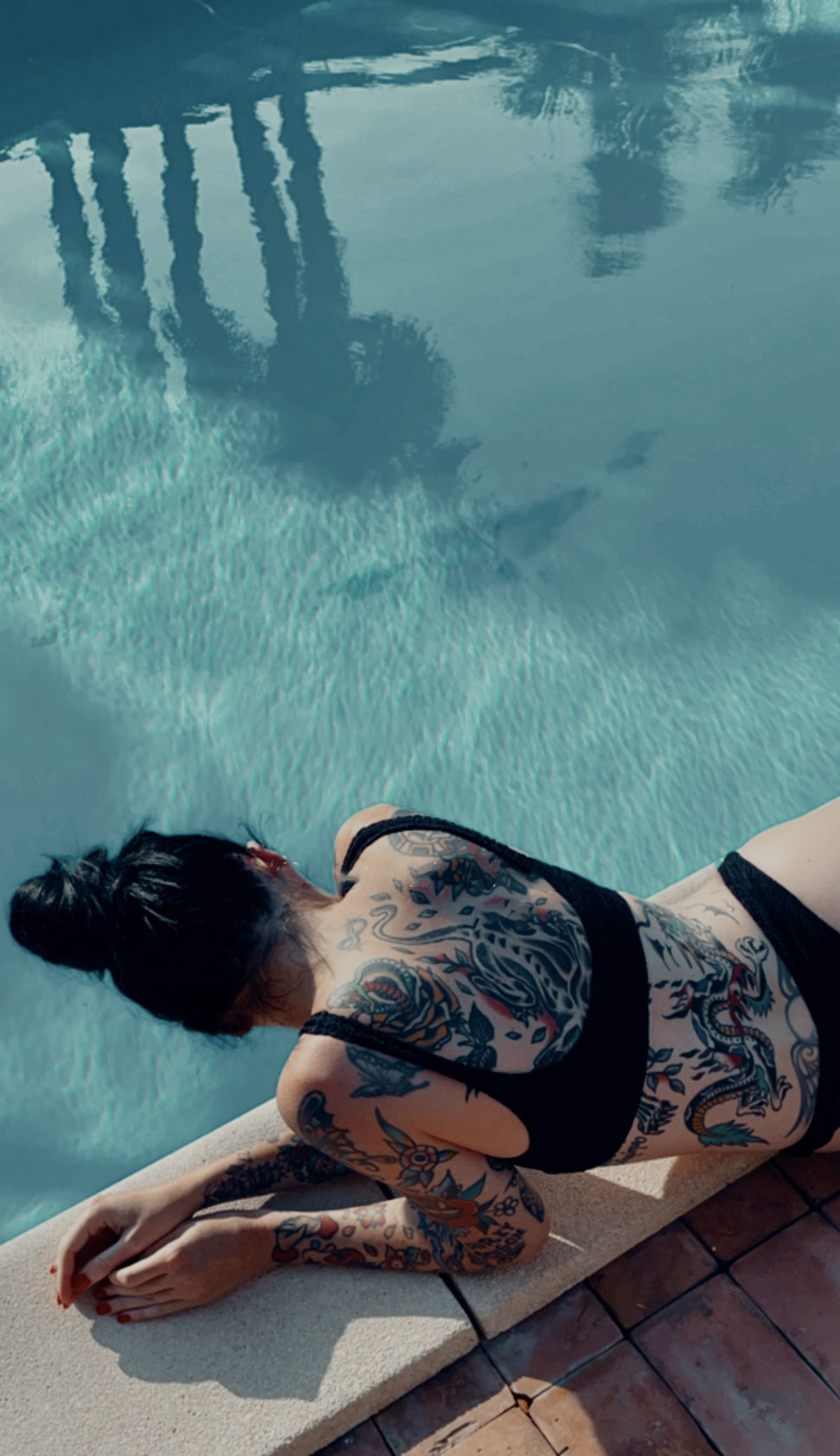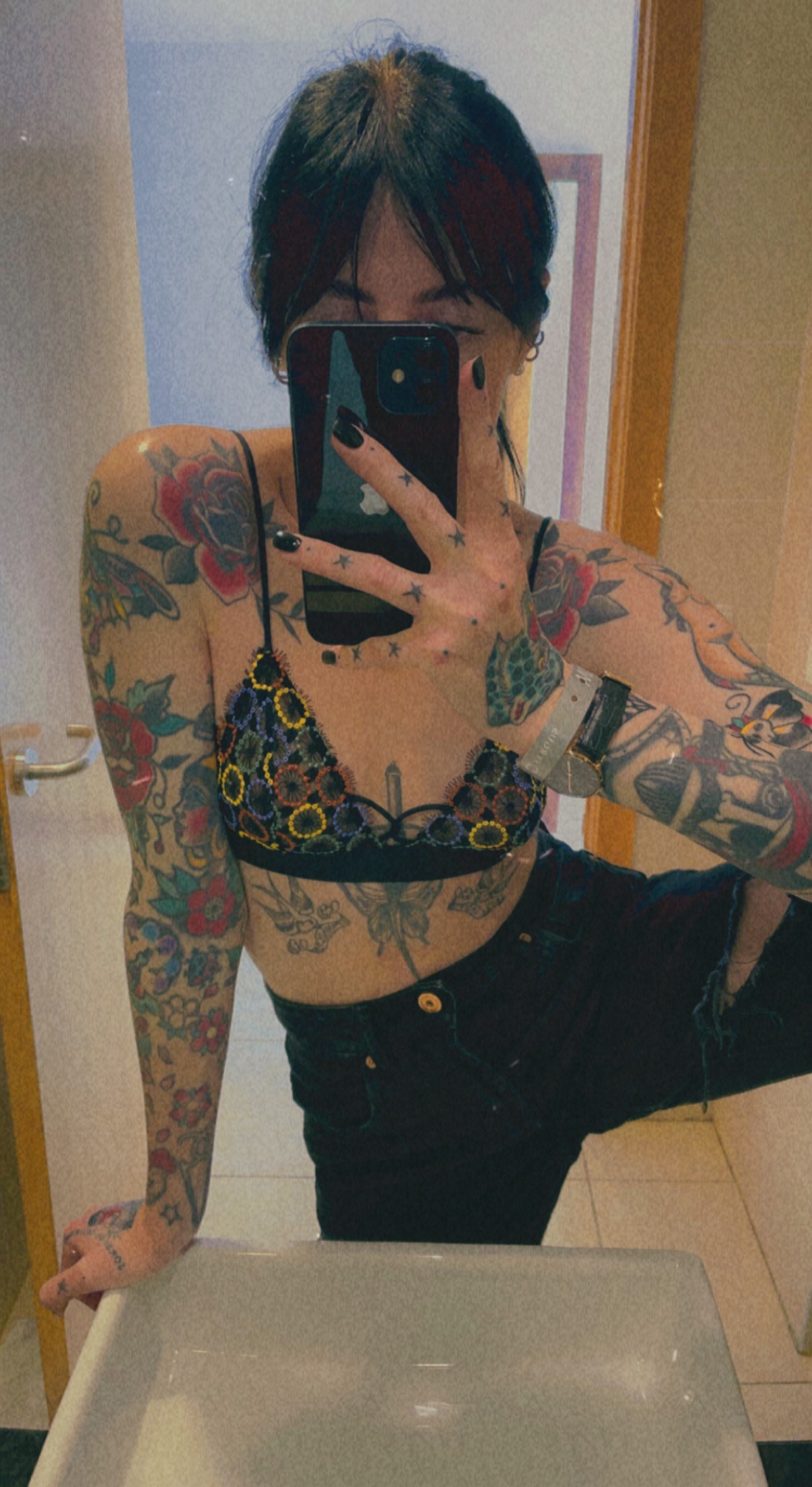 Scegliere cosa raccontare e quale pezzo di me svelare non è stato semplice: sono legata ad ogni singola goccia d’inchiostro ed è quasi impossibile trovare un pezzo preferito. Dico sempre che i miei tatuaggi sono i miei abiti, la mia t-shirt oversize nera, in cui amo perdermi. La mia barriera per lasciare il mondo fuori, al riparo da tutto e da tutti. Sì, i disegni che ho addosso sono esattamente come il tuo maglione preferito o il tuo vestito comodo e confortevole che indossi sempre.